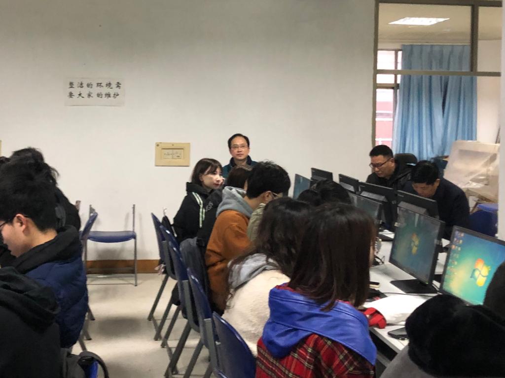 院内检查结束后,副校长杨震与教务处副处长秦建新到至善楼我院课堂听课。