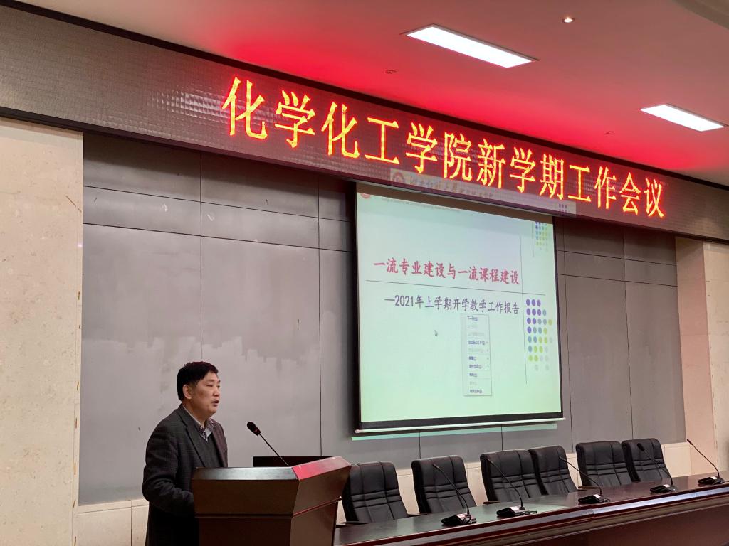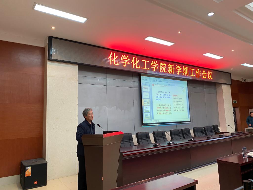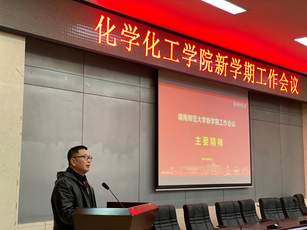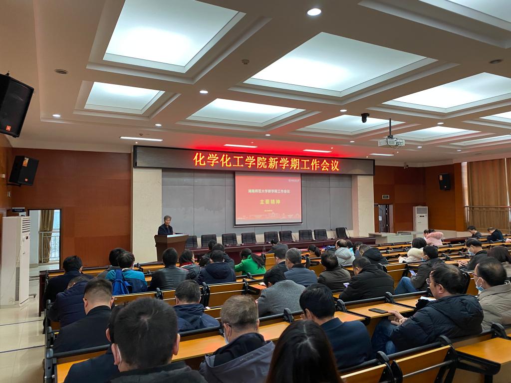 2021年3月4日下午,我院在化学楼报告厅召开了新学期工作会议。全体院领导出席此次会议,会议由党委书记于风江主持。