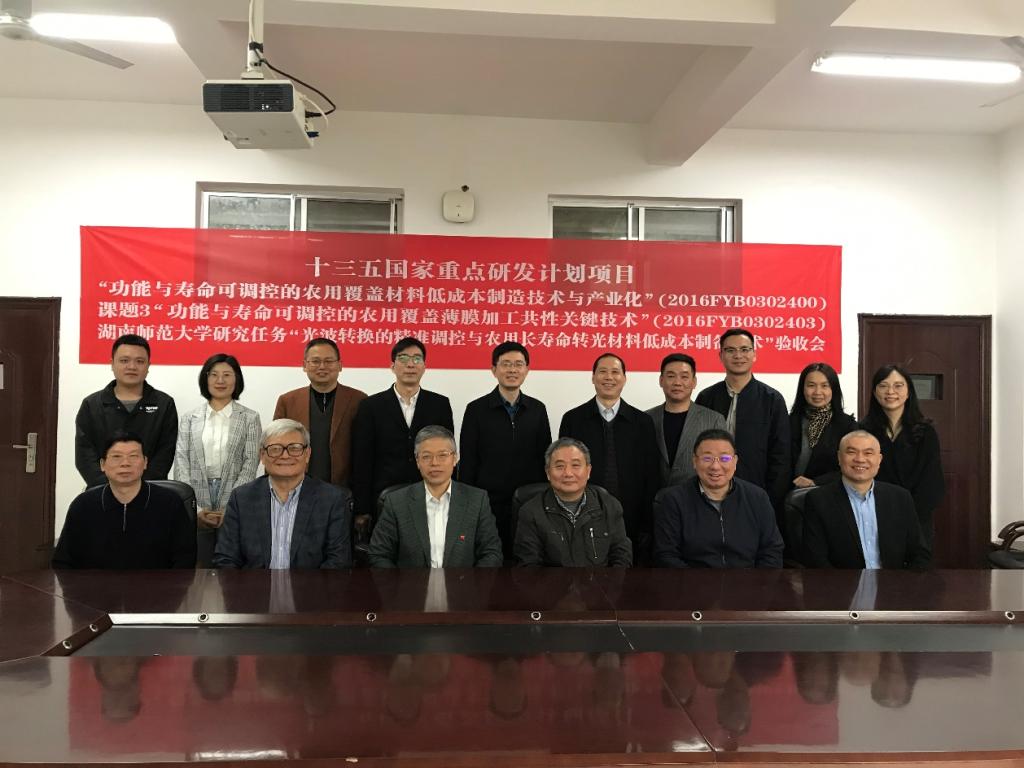 4月25日,十三五国家重点研发计划项目“功能与寿命可调控的农用覆盖材料低成本制造技术与产业化”(2016FYB0302400)湖南师范大学研究任务“光波转换的精准调控与农用长寿命转光材料低成本制备技术”顺利通过专家组验收。