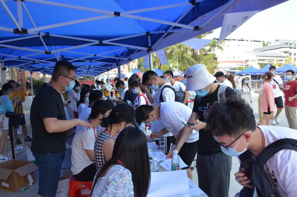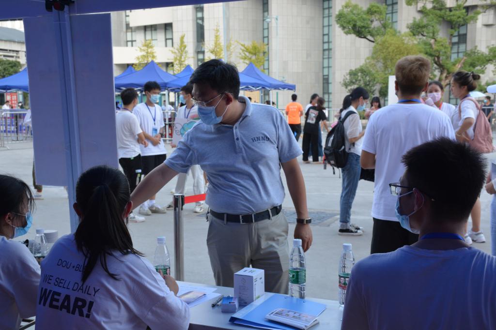此次迎新工作由院党委副书记罗艳老师、学工办屈杜炜老师、院欧阳唯一老师、谢云霞老师、张婧老师担任指导老师。化工院团学组织全体学生干部、20级各班班长和团支书、志愿者团队以及21级全体班导共计200余人参与其中。青年传媒中心、学生会的负责人以及志愿者在湖南师范大学研究生五舍广场迎新点进行扫码迎新、核对绿码、发放校园卡、办理绿色通道的工作。团委、社团管理中心的工作人员以及志愿者在湖南师范大学化工院二楼报告厅收集材料、办理保险、发放校徽以及发放军训服。