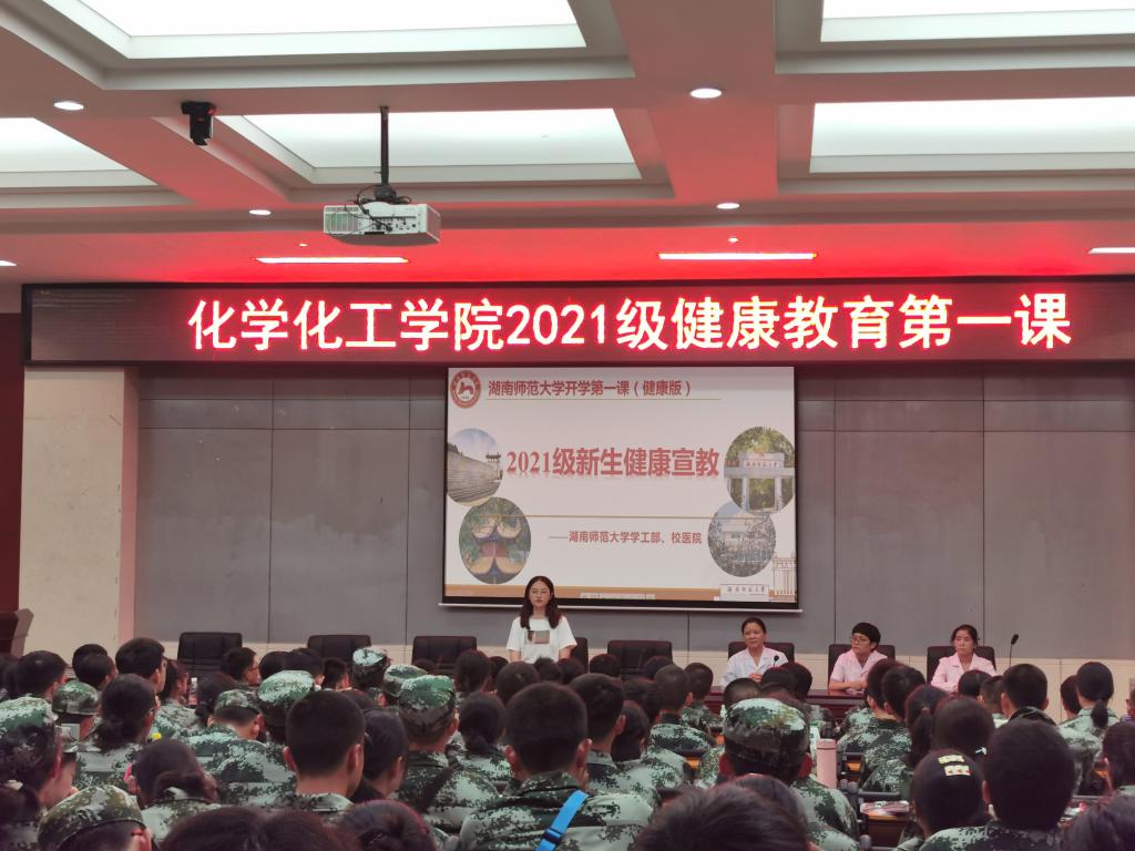 (通讯员 王晨)9月24日18时30分,yl6809永利官网在化工院报告厅举办2021级新生健康教育第一课。此次课程由2021级辅导员张婧老师主持。湖南师范大学校医院副院长孟文华、医生杨志丽、胡聪聪出席此次课程。化工院2021级全体学生参加此次课程。