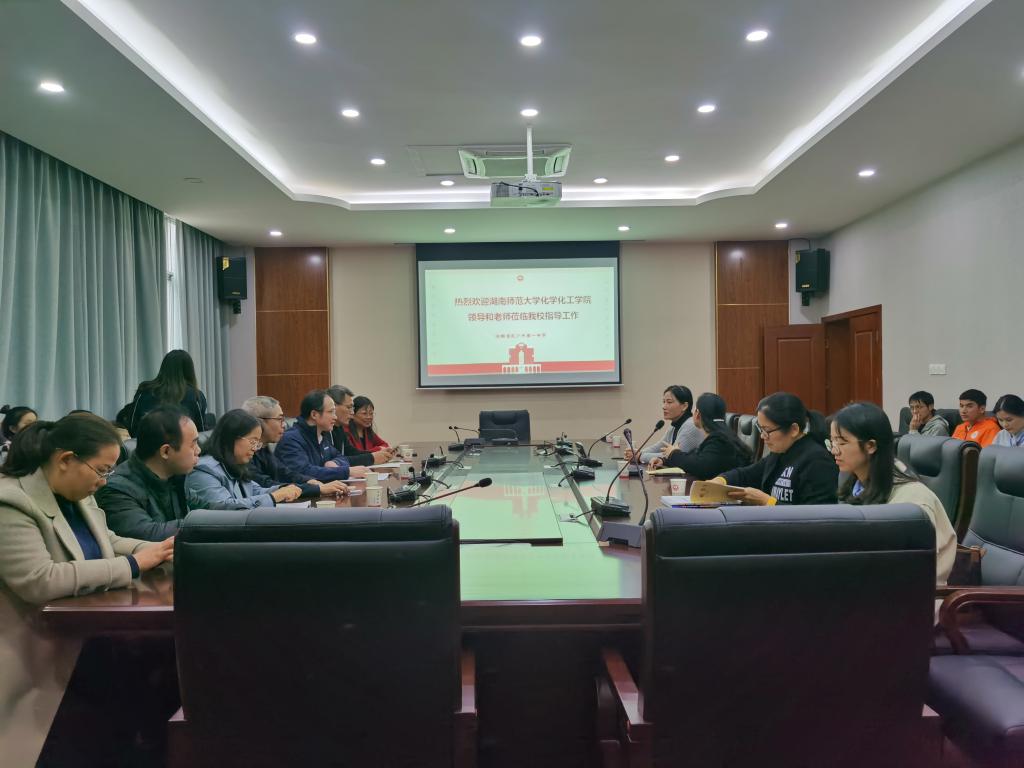 11月15日下午,yl6809永利官网副院长谭亮、化学系主任梁云、化学教育教研室主任耿淑玲、院教务办主任许华岚赴长沙市一中开展教育实习检查工作。学院实习指导老师汪萍、杨季冬以及实习队全体成员为检查工作做了充足准备。长沙市一中校长助理彭健、科创处主任钟文、化学组全体老师参加了本次工作。