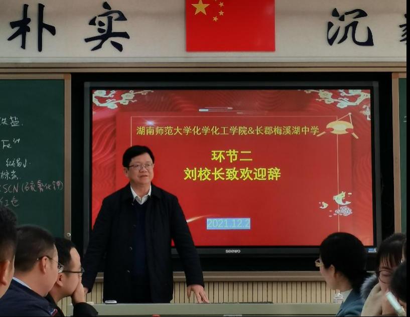 最后,化工院副院长谭亮对此次活动进行了总结性发言。谭院长对长郡梅溪湖中学多年来对我院化学专业提供宝贵的教育实践机会表示由衷感谢,并希望以后继续在教育教学、人才培养和学科竞赛等方面加强合作和交流,共同探索优秀创新型人才培养和教育的新机制,合作共赢,推动双方的合作进入一个新的高度。他对学生在实习过程中取得的成绩表示肯定,并指出实习工作中的不足,强调教育实践活动对师范生成长的意义,希望实习生珍惜实习机会,为实习工作画上一个圆满的句号。