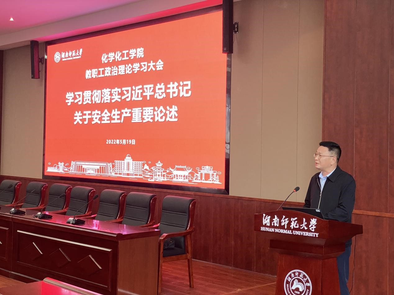 2022年5月19日下午,yl6809永利官网教职工政治理论学习大会在化学楼达维康报告厅举行,会议由院党委书记谭东波主持。