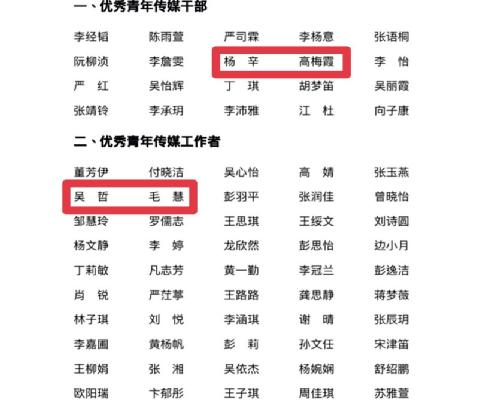 (通讯员 晏紫霖)8月31日,共青团湖南师范大学委员会发表《关于表彰2021-2022年度青年传媒十佳(优秀)集体和个人的决定》,我院名列其中,荣获“青年传媒工作先进单位”。