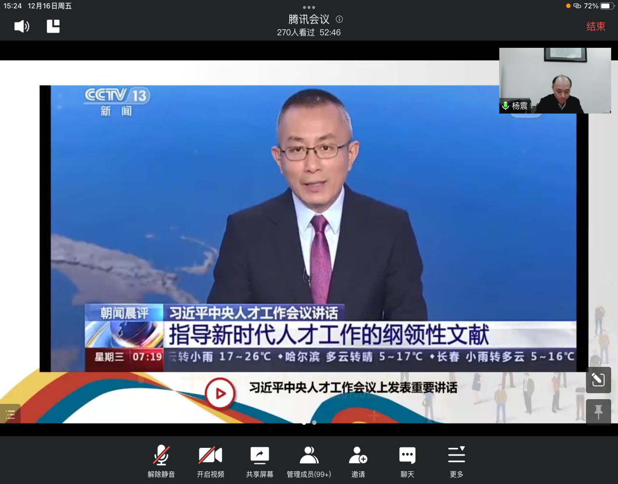 (通讯员谭恒)12月16日下午,我院以视频会议形式举办“深入学习宣传贯彻党的二十大精神”专题宣讲会。副校长杨震受邀为我院师生进行宣讲,院党委书记谭东波主持宣讲会。