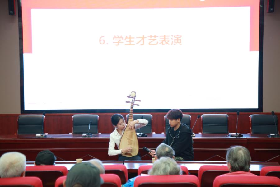 随后,全体离、退休教师一起录制了祝福视频,为校庆送上了化院人的诚挚祝福,学生代表为老师们带来了诗歌朗诵、琵琶弹奏等才艺表演。老同志们欢聚一堂,畅聊学院的新气象和丰富多彩的退休生活,漫步美丽的秋日校园,兴致勃勃地参观了校天文馆,度过了一个欢乐祥和的节日。