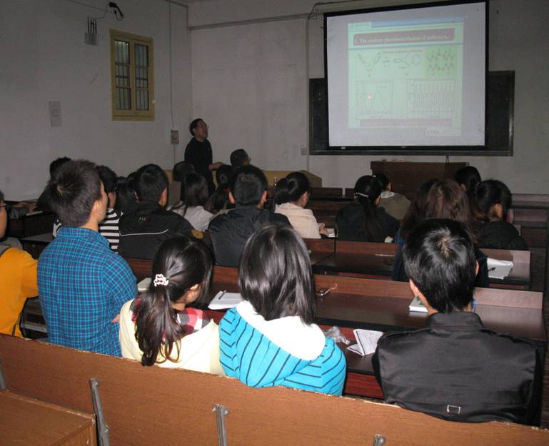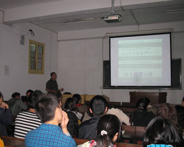 2012年10月23日,北京师范大学化学学院院长方维海教授和厦门大学固体表面物理化学国家重点实验室副主任曹泽星教授分别做了“Photo-induced isomerization of ethylene-bridged azobenzene explored by ab initio based nonadiabatic dynamics simulation”和“量子-经典力学组合方法与生物体系的计算模型”的学术报告。方教授主要详细地讲解了偶氮苯光学异构的整个思路及研究过程,通过模拟的100条轨迹来分析结构能量随时间的变化。还概括了气相反应的过程;分析了溶剂对偶氮苯的影响。曹教授主要介绍了分子激光态与光化学、过渡金属体系与金属酶体系。我院物理化学和材料化学的研究生踊跃提问,两位教授一一详细作了讲解。化学生物学及中药分析教育部重点实验室主任谢青季教授、yl6809永利官网副院长肖小明教授、马铭教授等参加了学术报告并与两位教授就科研和管理等方面进行了广泛交流。