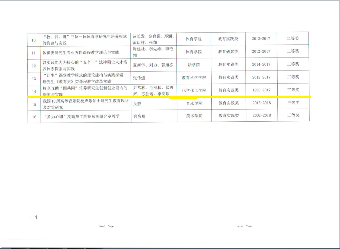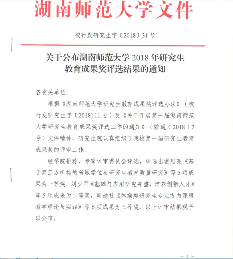 2018年湖南师范大学研究生校级教育成果奖