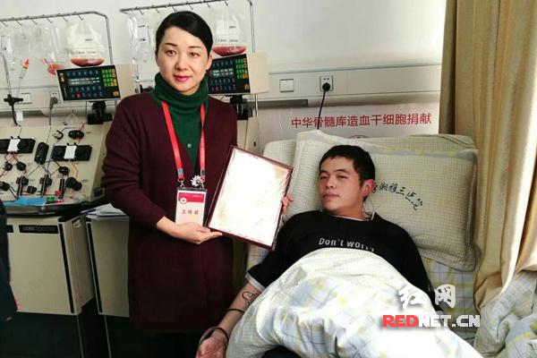 湖南师范大学大三学生冉景笛(右)捐献造血干细胞,挽救白血病儿童。