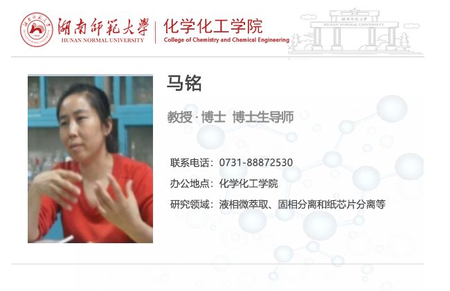 [1] 张朝辉, 周娜姣, 刘星, 陈应庄, 郭宾, 马铭*, 陈波*. 药品、环境和食品中马兜铃酸分析检测方法的研究进展, 分析化学, 2021,49(11), 1792-1803.