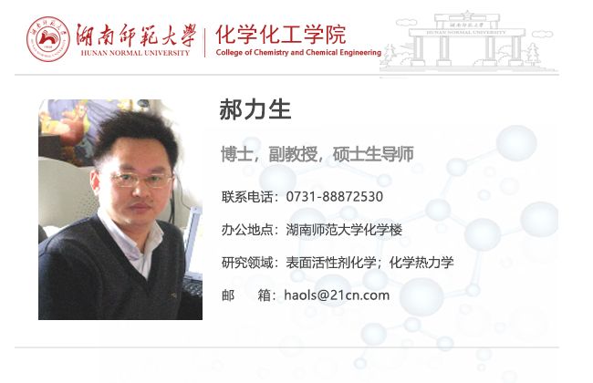 表面活性剂化学: 特种表面活性剂的合成、表面活性剂的物性数据的测量;特别关注离子型表面活性剂的复配系统的相行为、微观结构、流变性质、盐效应以及该类系统的应用;化学热力学:状态方程。