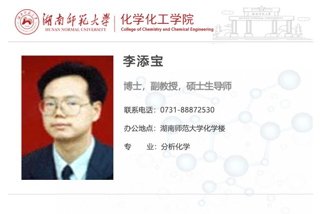 李添宝,1965年2月出生,工学博士,副教授,专业:分析化学