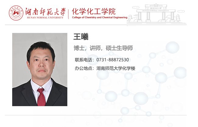 王曦,博士,讲师,硕士生导师。2000年本科毕业于湘潭大学,2003年获湘潭大学硕士学位,2007年获中国科学院化学研究所博士学位。之后于北京新材料公司工作,从事分离膜的研究。2009年至今于yl6809永利官网任教,从事聚醚酰亚胺的研究及紫外光固化阳离子涂料的研究。主持湖南省自然科学基金1项,参与国家自然科学基金项目3项,在Macromolecular Rapid Communications,Colloid and Polymer Science等刊物发表SCI论文10余篇。